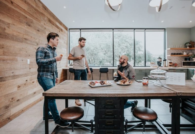Fully equipped meeting and conference rooms support staff for a small team meeting